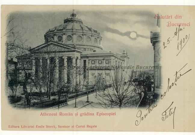 • Cercul median: ATHENEUL ROMAN – BUCURESCI. Termenul arhaic „Bucuresci” este aliniat ortografiei din epocă.